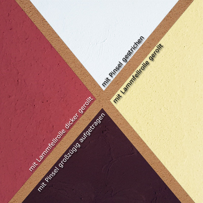Wenn Sie auf Zuschläge wie Glimmer, Strohhäcksel oder Gräser nicht verzichten möchten, können Sie mit der Rapido Lehmfixierung und dem gewünschten Zuschlag eine Lasur herstellen und diese nach Austrocknung mit Rolle oder Pinsel aufbringen. Dazu benötigen Sie 100 g Fixierung auf 5 l Wasser.