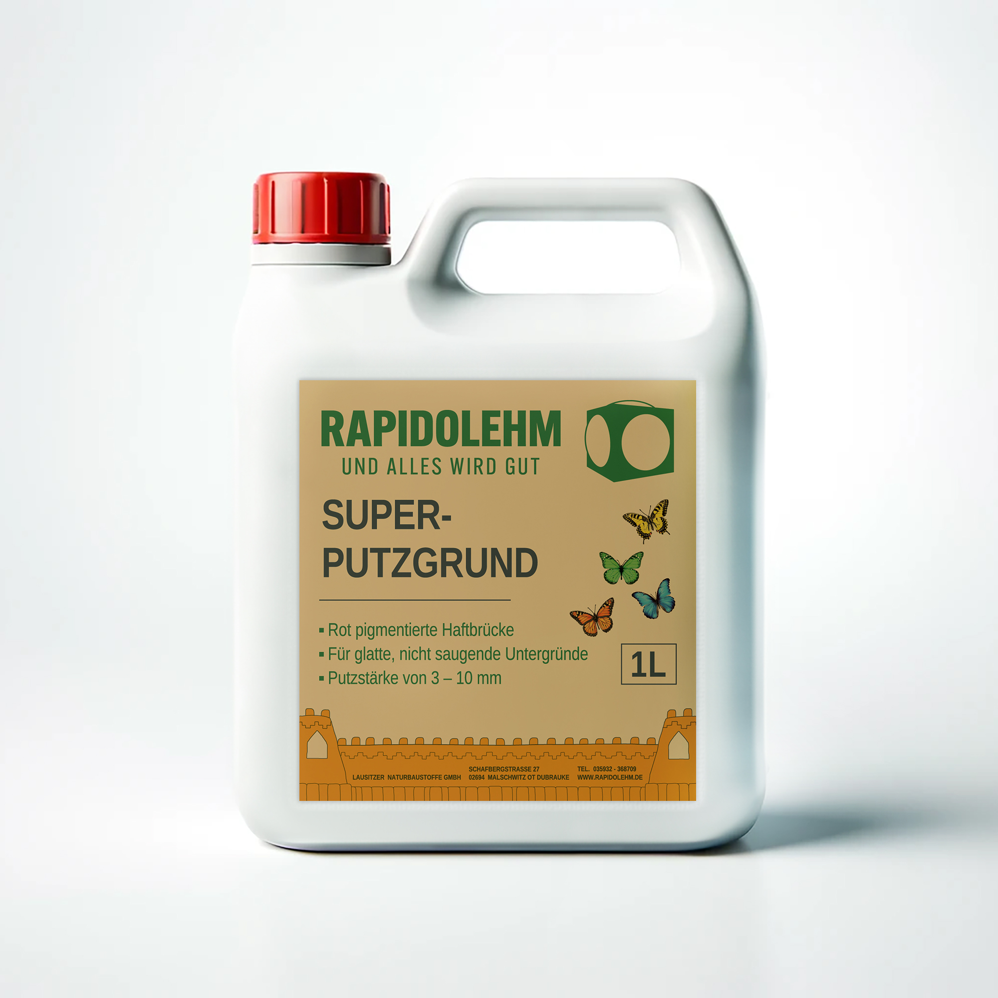 Dieser Superputzgrund eignet sich für Klebe- und Armierungsmörtel und Universallehmputz bis 10 mm Dicke oder als erster Kontakt für nachfolgende Mineralhaftbrücke auf glatten, nicht saugenden Untergründen. Er ist nicht AUF Lehmbaustoffen, sondern UNTER Lehmbaustoffen zu verwenden!