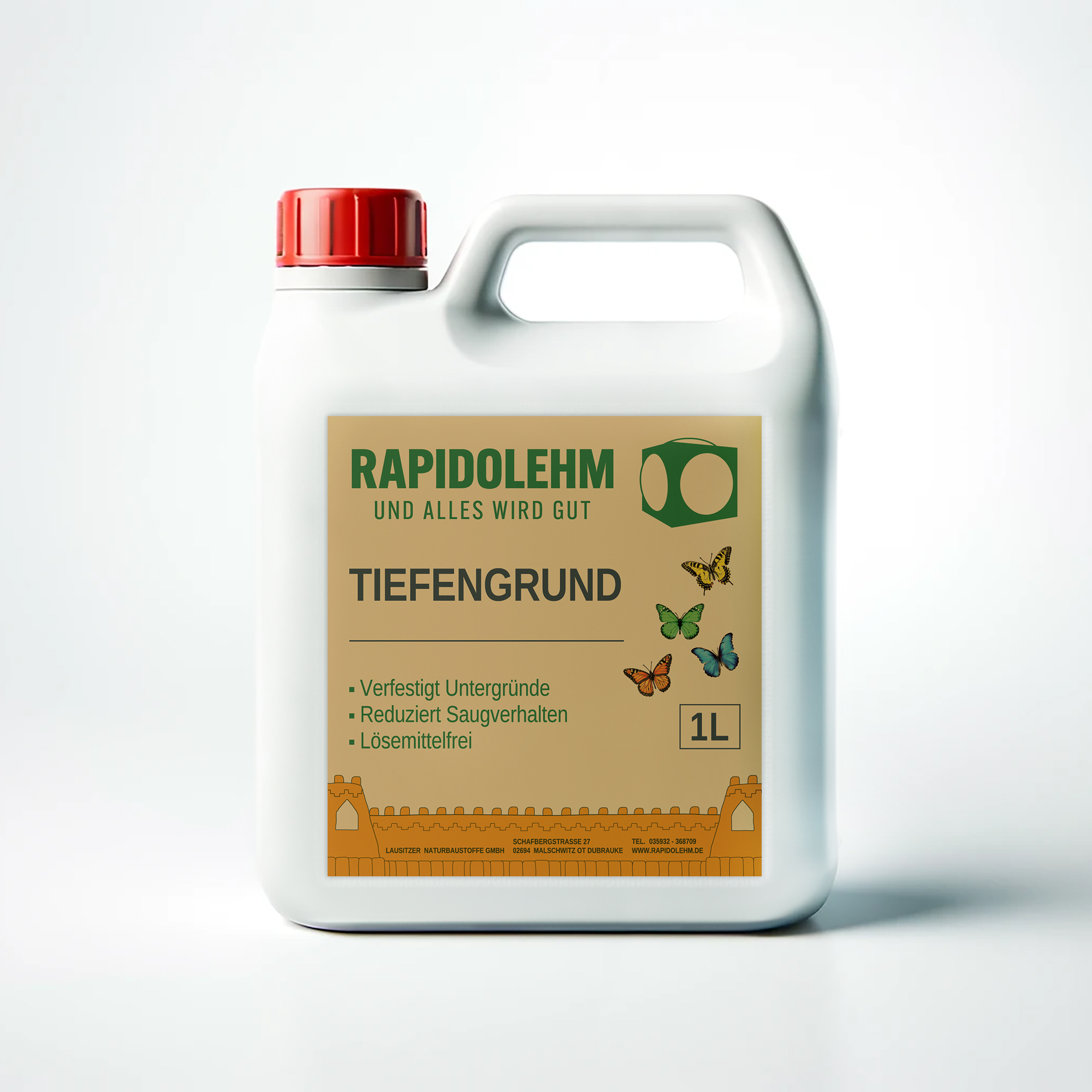 Rapidolehm Tiefengrund ist ein Konzentrat einer lösungsmittelfreien Acrylat-Grundierung, die vor allem für die nachfolgende Anwendung von Lehmfarbe und Lehmglätte geeignet ist.