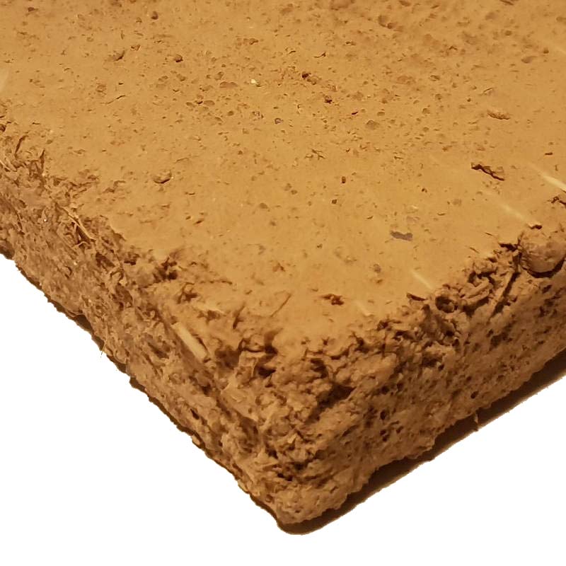 Die Rapidolehm Lehmbauplatte besteht aus sehr smektithaltigem Grubenlehm mit einem Strohanteil von ca. 26-Vol%, welches für besonders gute Absorbtionswerte sorgt.
