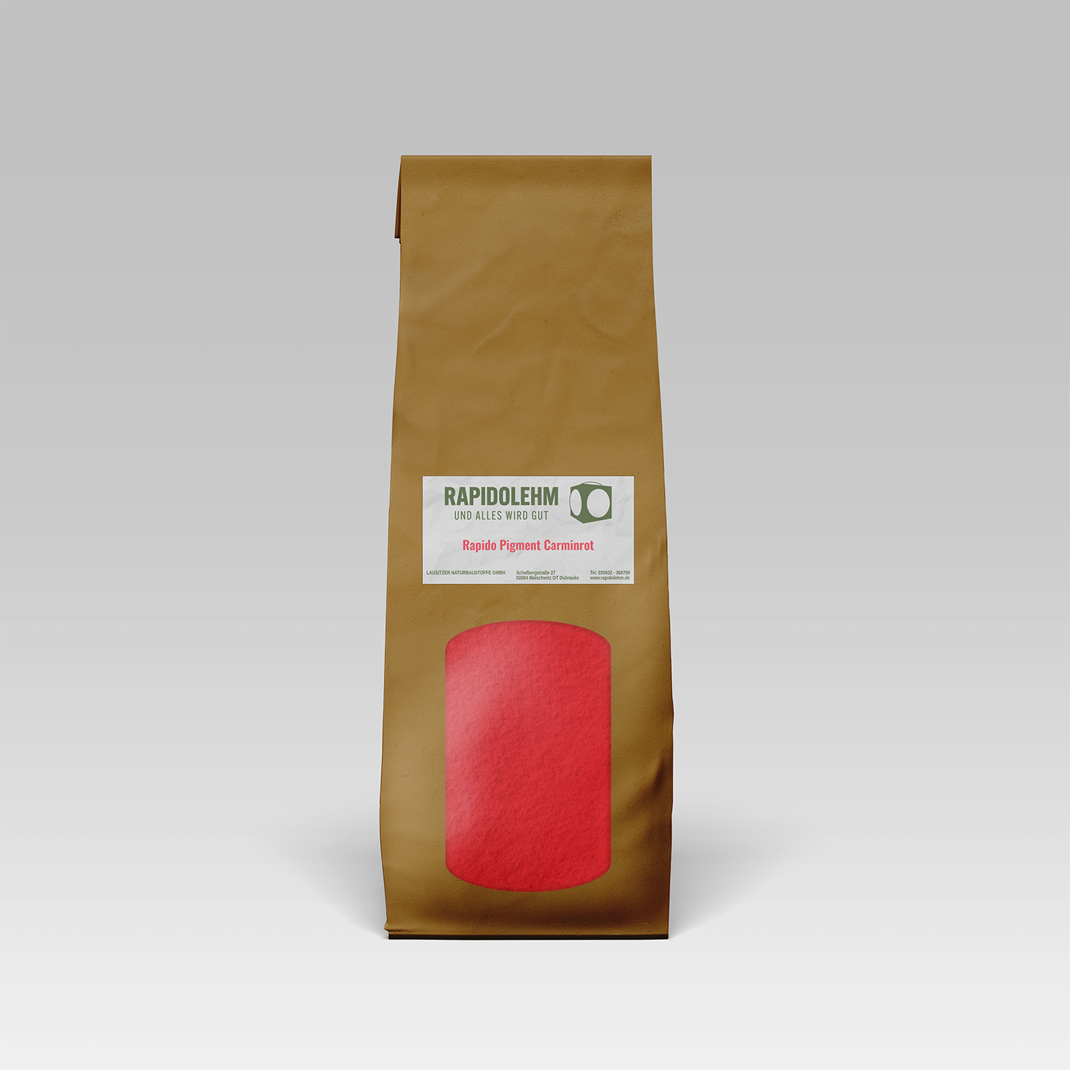 Verarbeitung: Die benötigte Menge Pigment ( Berechnungsgrundlage: 1 Gramm Pigment auf 4 ml Wasser) wird in das Anmachwasser eingestreut und etwa 2 Minuten gut durchgerührt, bis alles klumpenfrei ist. Anschließend wird das Trägermaterial (z.B. Lehmfarbe oder Lehmglätte) nach Anleitung mit dem eingefärbten Wasser angemischt.