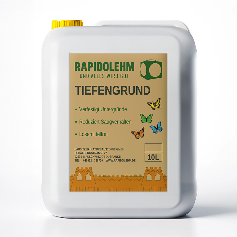 Rapidolehm Tiefengrund ist ein Konzentrat einer lösungsmittelfreien Acrylat-Grundierung, die vor allem für die nachfolgende Anwendung von Lehmfarbe und Lehmglätte geeignet ist.